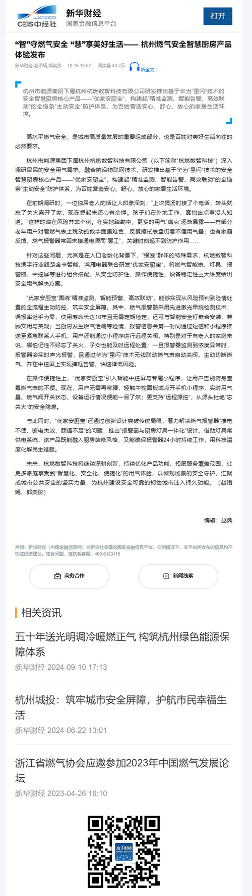 杭州市能源集團(tuán)下屬杭州杭燃數(shù)智科技有限公司(以下簡(jiǎn)稱“杭燃數(shù)智科技”)深入調(diào)研居民的安全用氣需求,融合前沿物聯(lián)網(wǎng)技術(shù),研發(fā)推出基于華為“星閃”技術(shù)的安全智慧廚房核心產(chǎn)品——“優(yōu)家安廚寶”,構(gòu)建起“精準(zhǔn)監(jiān)測(cè)、智能告警、高效聯(lián)動(dòng)”的全鏈條“主動(dòng)安全”防護(hù)體系,為百姓營(yíng)造安心、舒心、放心的家居生活環(huán)境。